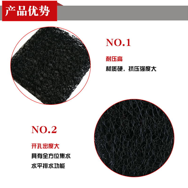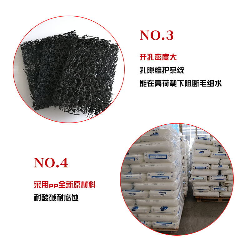 土工席墊與無紡?fù)凉げ紡?fù)合后,能在掩埋的封閉覆蓋層之下,將匯集滲透過土壤覆蓋層的雨水或堆場本身排放的污水,利用其獨(dú)特的排水功能,按照工程要求從土工席墊夾層中有序排放,而不會形成淤堵。因此可以避免因土壤覆蓋層吸水飽和而產(chǎn)生可能的滑動問題。土工席墊既能排水,同時也可排放土壤(特別是垃圾廢棄物)中因發(fā)酵產(chǎn)生的沼氣,在垃圾填埋場中應(yīng)用尤其適用。土工席墊與HDPE土工膜結(jié)合應(yīng)用時,同時能起到很好地保護(hù)HDPE膜不被穿刺的作用。